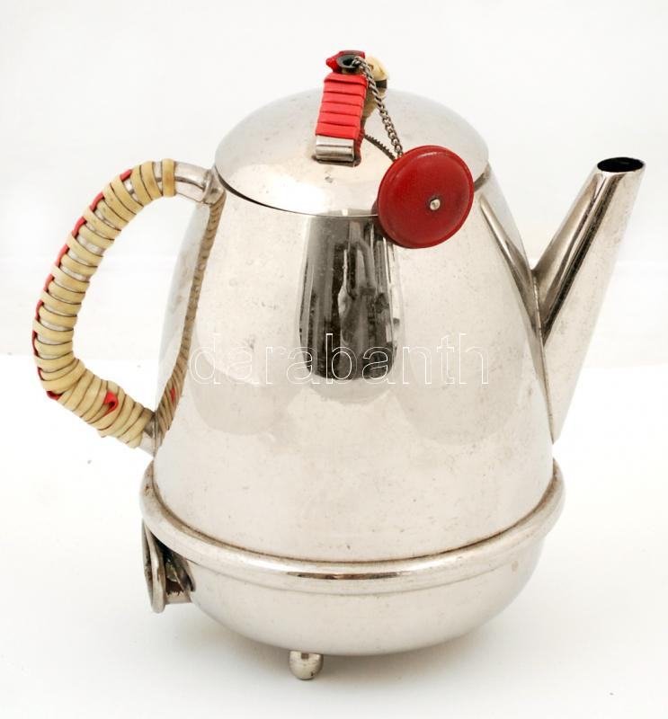 Beschreibung: Art deco melegítős fém teáskanna, beépített teatojással, utóbbi alja hiányzik