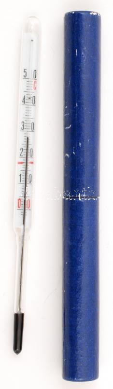 Beschreibung: Jelzett régi hőmérő, eredeti tokjában, h:19 cm