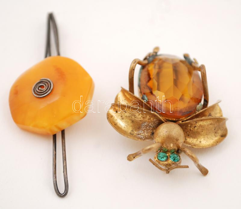 Méhecskét formázó, régi borostyán kitűző, hajcsat https://www.darabanth.com/de/230-Fernauktion/230.0/Andere-Sammelgebiete/Flohmarkt~200021/Mehecsket-formazo-regi-borostyan-kituzo-hajcsat~II1033593