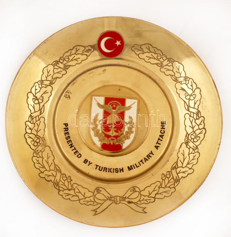 Török katonai Attasé ajándéka fém dísztányér, apró kopásnyomokkal, m:... https://www.darabanth.com/de/230-Fernauktion/230.0/Andere-Sammelgebiete/Flohmarkt~200021/Torok-katonai-Attase-ajandeka-fem-disztanyer-apro-kopasnyomokkal-m175mm-Metall-plat~II1015181
