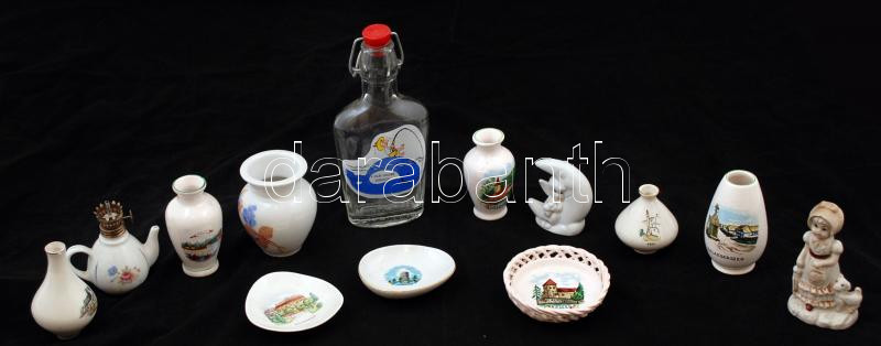 Vegyes bolha tétel: zsebsakk, üvegpalack, kulcstartók, telefontok, telefontartó, mini puzzle, porcelán, kerámia vázácskák, tálkák(némelyik sérült) stb., összesen 21 db