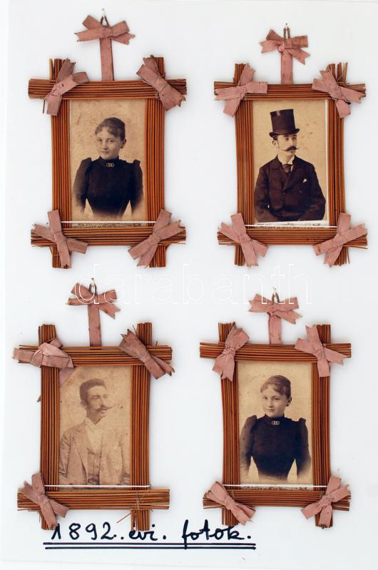 1892 Hölgyek, urak, 4 db műtermi keményhátú portréfotó kis keretben pa... https://www.darabanth.com/de/230-Fernauktion/230.0/Andere-Sammelgebiete/Foto~200035/1892-Holgyek-urak-4-db-mutermi-kemenyhatu-portrefoto-kis-keretben-papirra-rogzitve-6x8-~II1034055
