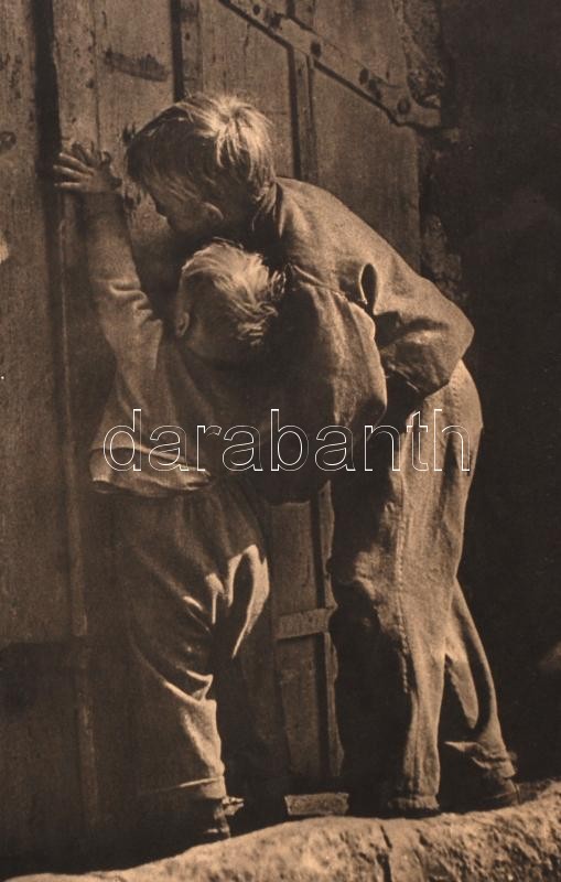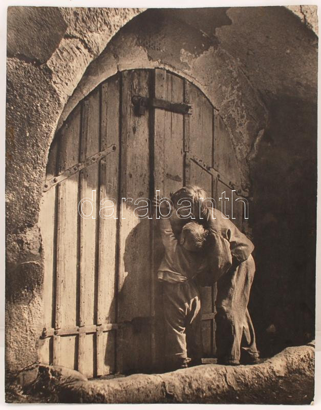1957 Tomori Ede: Mi lehet bent? Jelzés nélküli, nagyméretű vintage fotóművészeti alkotás, publikálva a Művészfotók (1957) című fotóalbum címlapján, kartonra kasírozva, 59x45 cm