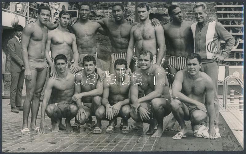 Beschreibung: 1968 Laky Károly vízilabdázó, mesteredző (1967-től a kubai vízilabda csapat edzője) csapatával, 20x13 cm
