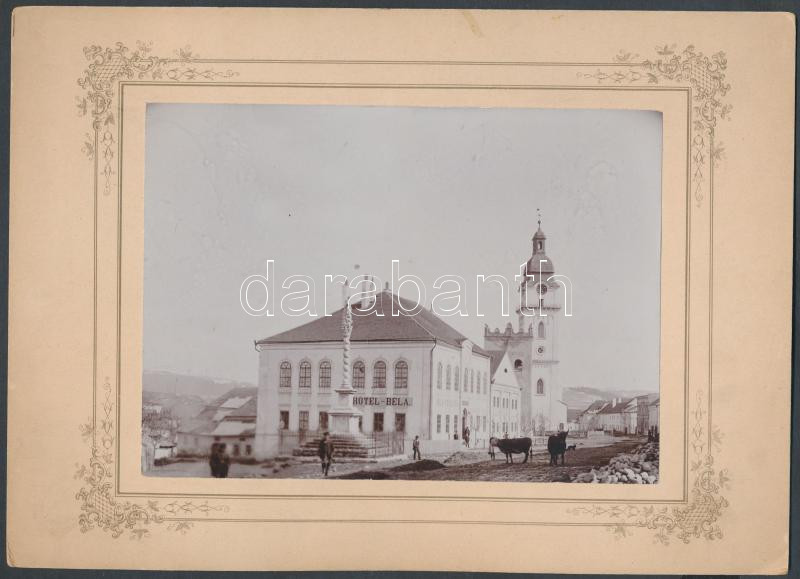 cca 1890-1900 Szepesbéla(Szlovákia), A Hotel Béla háttérben a helyi református templommal, kartonra kasírozott fotó, hátoldalon feliratozva, fotó 16x12 cm, karton 25x18 cm /