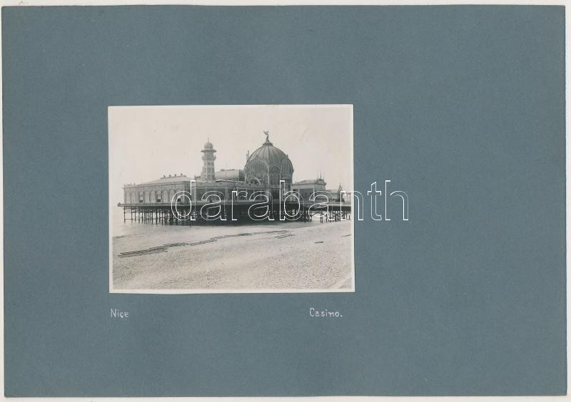 cca 1920 Franciaország, Nizza, cölöpökre épült kaszinó és a korzó, 2 db feliratozott, felragasztott fénykép, ismeretlen fotográfus hagyatékából, 8x11 cm, karton 17x25 cm /