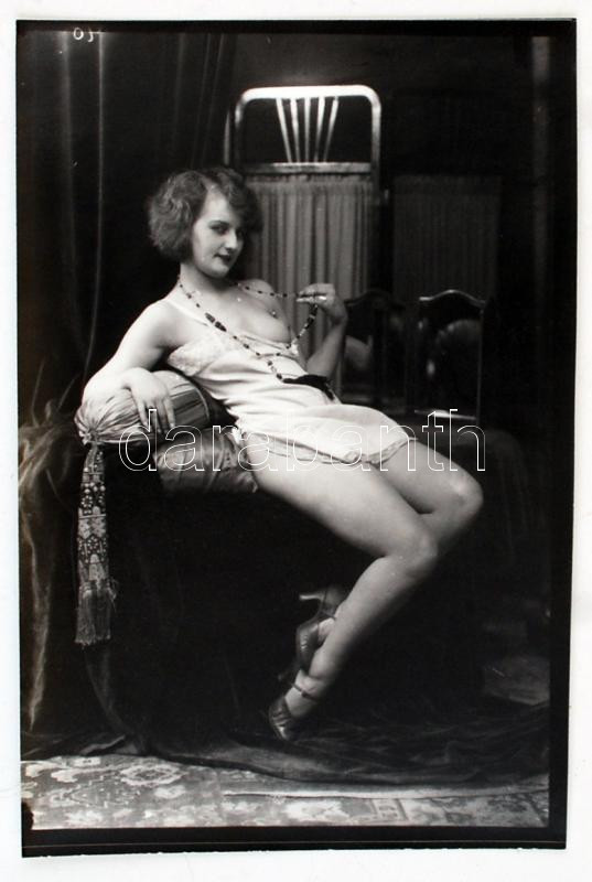 cca 1925-1930 Demeter Károly (1892-1983) párizsi korszakából való finoman erotikus jelzetlen fénykép, azonos méretű üveglemez negatívról készült, későbbi kontakt másolat a szerző hagyatékából, 17x12 cm