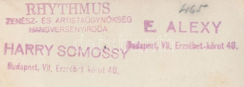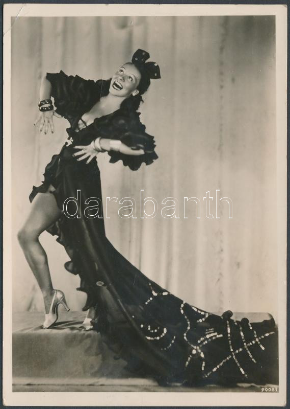 cca 1930 A Rhytmus zenész és artistaügynökség reklámfotója Cinci Martinról (valószínűleg felvett művésznév) egy turnézó dinamikus magyar táncosnőről, három különféle pecséttel a hátoldalon, 15x10,5 cm
