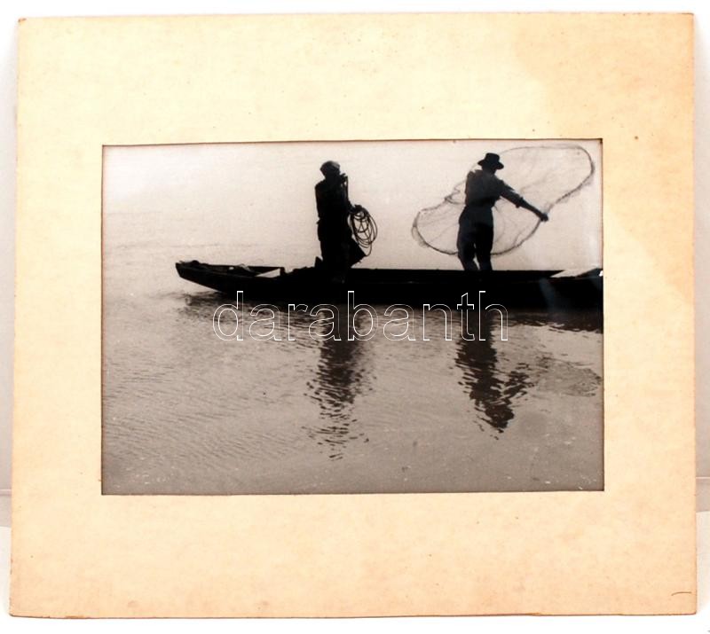 Beschreibung: cca 1930 Dr. Amberg Ernő (Soproni Fotóklub): Halászok, aláírt vintage fotóművészeti alkotás, 30x39 cm, karton 45x49 cm