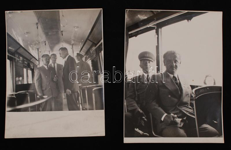 cca 1947 Keresztes Sándor (1919-2013) politikus kormányőri biztosítással egy trolibusz utasaként, Tiszavölgyi József hagyatékából 2 db pecséttel jelzett fotó, 17x13 cm