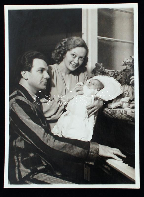 cca 1958 Gyurkovics Mária (1913-1973) Kossuth-díjas operaénekesnő és Forrai Miklós (1913-1998) Liszt Ferenc díjas karnagy, zenetanár újszülött gyermekükkel, Rozgonyi felvétele, 16x12 cm