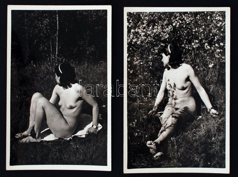 Beschreibung: cca 1960-1970 Egyedül a réten, 2 db akt fotó, 9x14 cm /