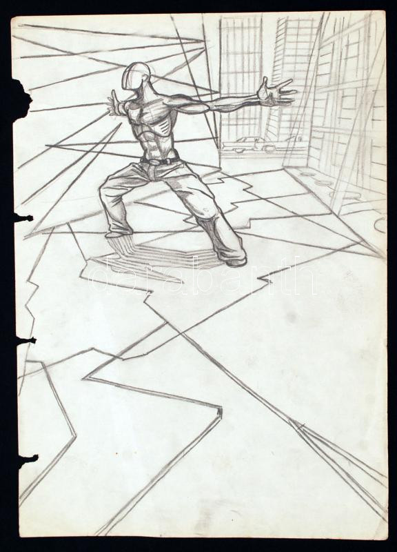 Beschreibung: Kormos Balázs (1976-): Ez vagyok. Ceruza, papír, jelzett, kis szakadásokkal, 29×21 cm