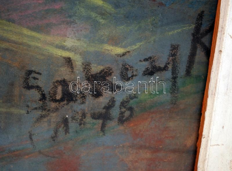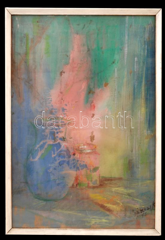 Beschreibung: Sárközy jelzéssel: Szürreális csendélet, akvarell, papír, üvegezett fa keretben, 68,5×46,5 cm