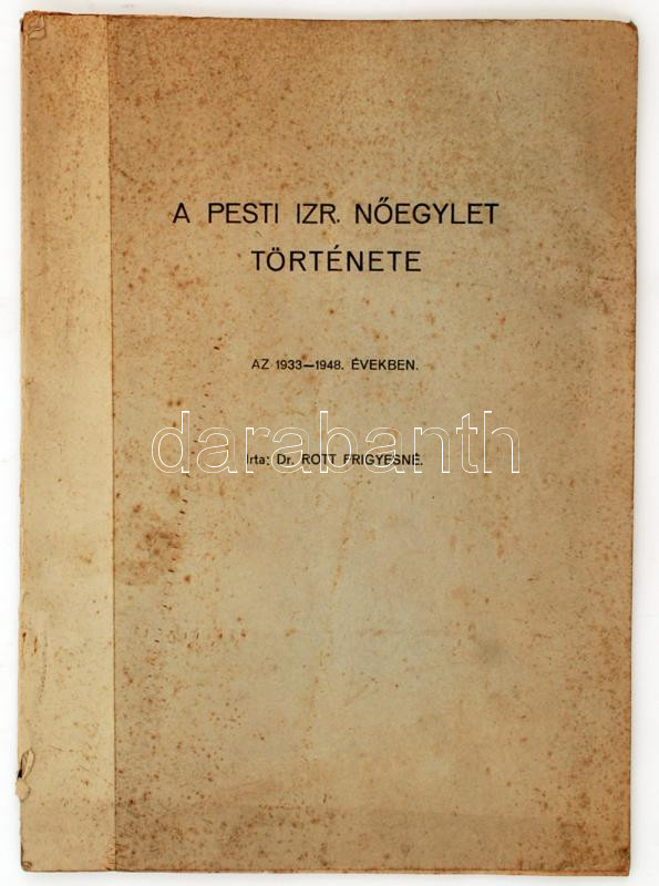 Rott Frigyesné dr.: A Pesti Izr. Nőegylet története at 1933-1948. évek... https://www.darabanth.com/de/230-Fernauktion/230.0/Andere-Sammelgebiete/Judaica~200041/Rott-Frigyesne-dr-A-Pesti-Izr-Noegylet-tortenete-at-1933-1948-evekben-Keziratanak-tiszte~II1033683