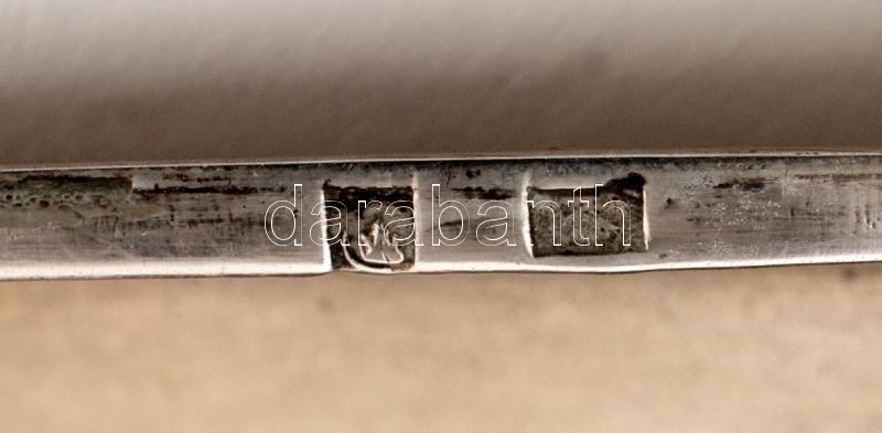 Beschreibung: Ezüst (Ag.) cigarettatárca, jelzett, mesterjeggyel, belül gravírozott felirattal, nettó:51 g, 7,5×5 cm