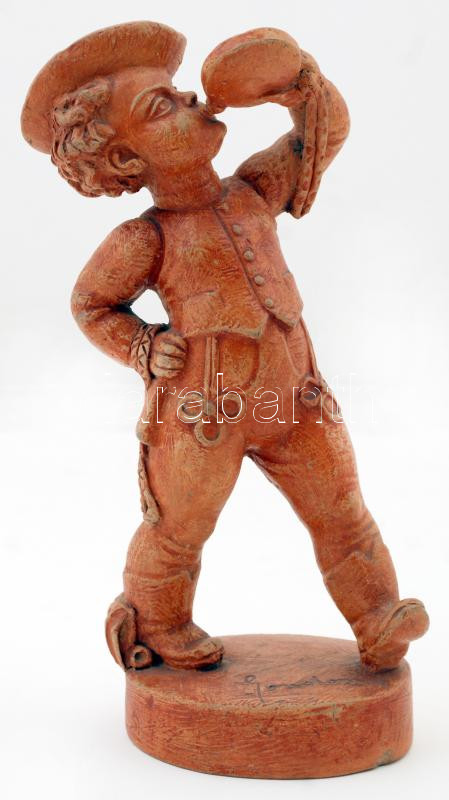 Beschreibung: Gondos kerámia ivó legény, festetlen, jelzett, apró lepattanással, m:28 cm