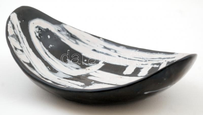 Beschreibung: Gorka Lívia (1925-2011): Mázas festett kerámia tál, hibátlan, jelzett, 14×22 cm