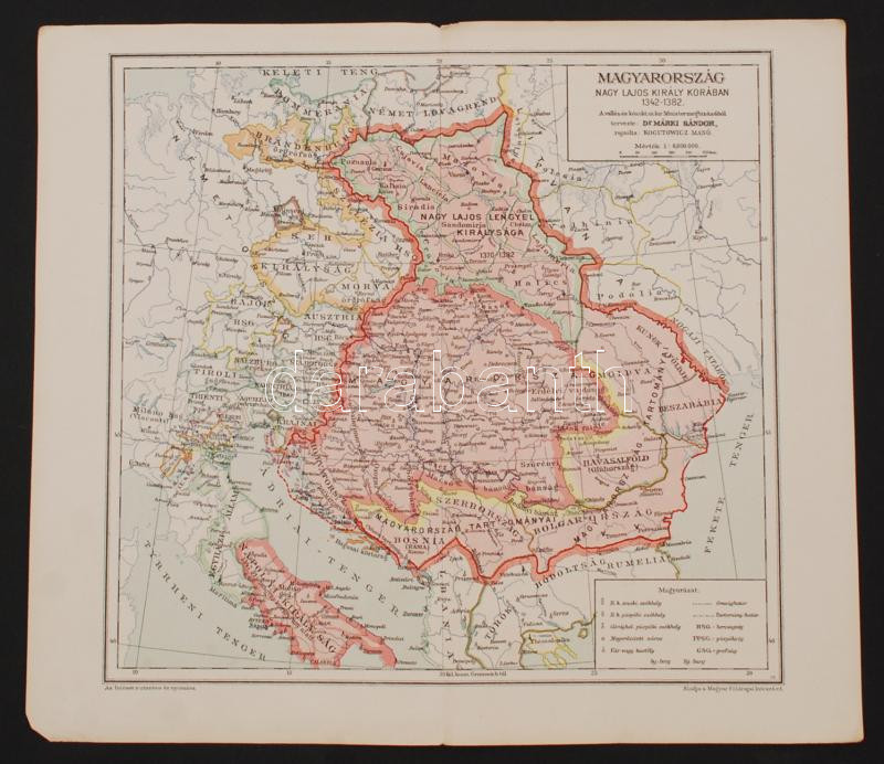 cca 1900 Magyarország Nagy Lajos Király Korában 1342-1382, rajzolta Kogutowicz Manó, tervezte Dr. Márki Sándor, kiadja a Magyar Földrajzi Intézet, 35x30 cm