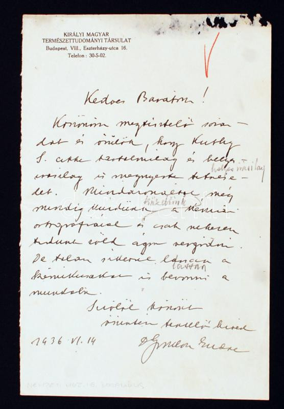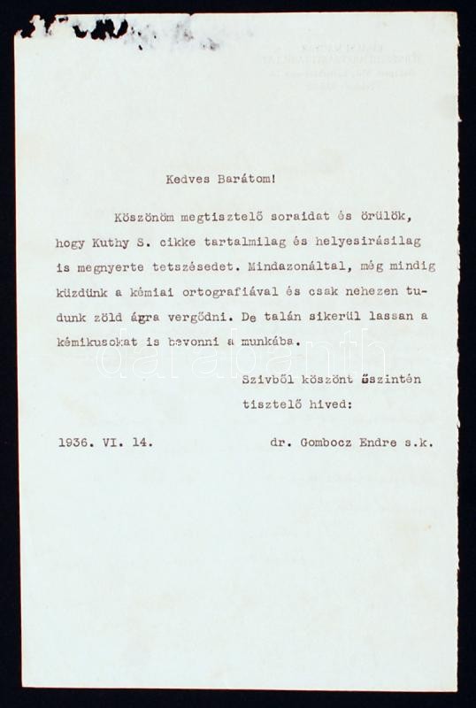 1936 Gombocz Endre (1882-1945) botanikus, tudománytörténész, bibliográ... https://www.darabanth.com/de/230-Fernauktion/230.0/Andere-Sammelgebiete/Signatur~200033/1936-Gombocz-Endre-1882-1945-botanikus-tudomanytortenesz-bibliografus-sajatkezu-levele~II1034318