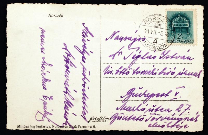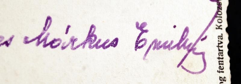 Beschreibung: 1941 Márkus Emília (1860-1949) színésznő aláírása és üdvözlő sorai képeslapon