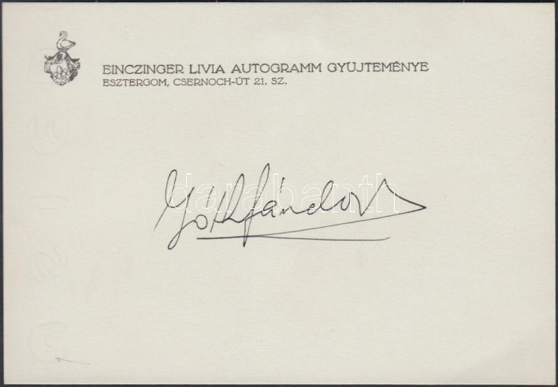 Beschreibung: Góth Sándor (1869-1946) színész, rendező és műfordító, színházigazgató aláírása