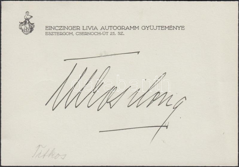 Beschreibung: Titkos Ilona (1898-1963) színésznő aláírása