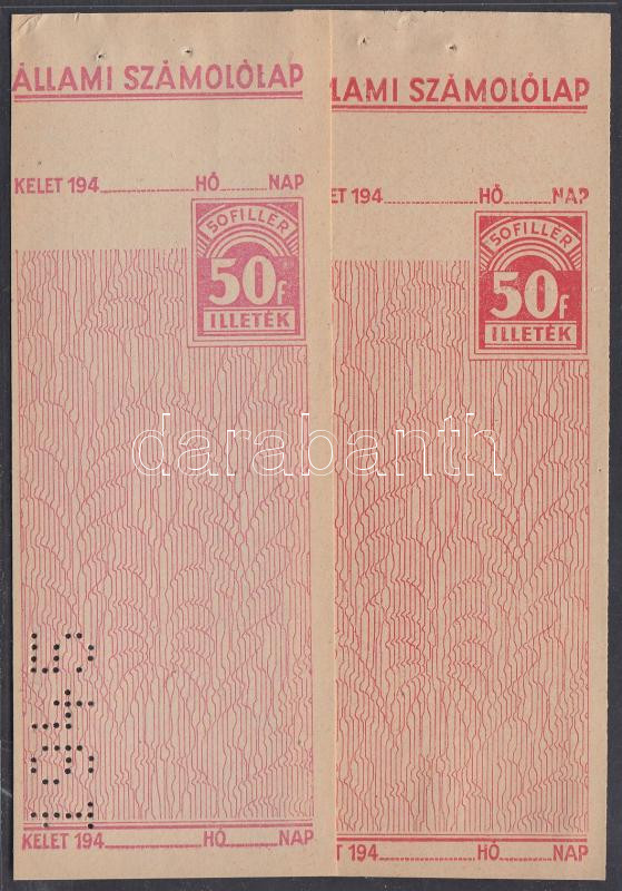 1944-1945 2 klf állami számolólap https://www.darabanth.com/de/230-Fernauktion/230.0/Andere-Sammelgebiete/Stempelmarken~200028/1944-1945-2-klf-allami-szamololap~II1035002