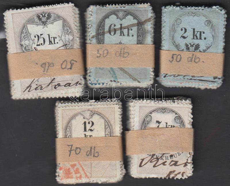 5 klf régi ragjegy 50-70-es kötegekben, összesen 280 db https://www.darabanth.com/de/230-Fernauktion/230.0/Andere-Sammelgebiete/Stempelmarken~200028/5-klf-regi-ragjegy-50-70-es-kotegekben-osszesen-280-db~II1034954