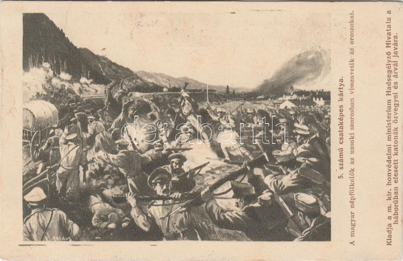5. számú csataképes kártya; Magyar népfölkelők az uzsoki szorosban az oroszok ellen / WWI Hungarian military, Hungarian-Russian battle at Uzsok Gorge s: Földes (EK)