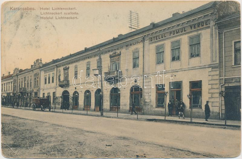 Karánsebes, Hotel Lichteneckert (EK) https://www.darabanth.com/de/230-Fernauktion/230.0/Ansichtskarten/Siebenburgen~5/Karansebes-Hotel-Lichteneckert-EK~II1037104