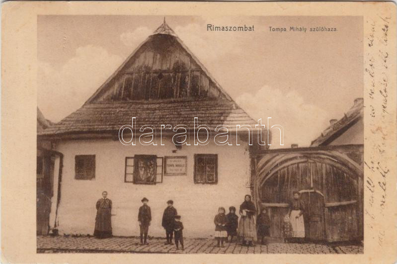 Rimaszombat, Tompa Mihály szülőháza, Ifj. Rábely Miklós kiadása / birt... https://www.darabanth.com/de/230-Fernauktion/230.0/Ansichtskarten/Slowakei~6/Rimaszombat-Tompa-Mihaly-szulohaza-Ifj-Rabely-Miklos-kiadasa-birth-house-EK~II1037110