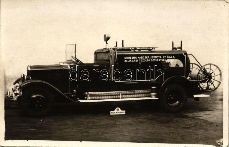 Vágsellye, 27. Járási Tűzoltó szövetség autója / fire engine automobil... https://www.darabanth.com/de/230-Fernauktion/230.0/Ansichtskarten/Slowakei~6/Vagsellye-27-Jarasi-Tuzolto-szovetseg-autoja-fire-engine-automobile-photo~II1031161