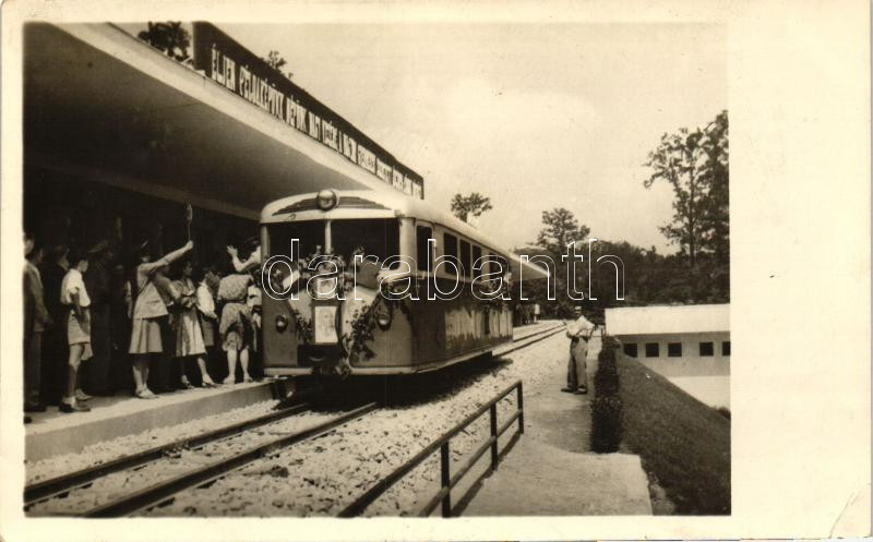 Budapest II. Hűvösvölgy, Úttörő vasútállomás, villamos (EK) https://www.darabanth.com/de/230-Fernauktion/230.0/Ansichtskarten/Ungarn~4/Budapest-II-Huvosvolgy-Uttoro-vasutallomas-villamos-EK~II1029774