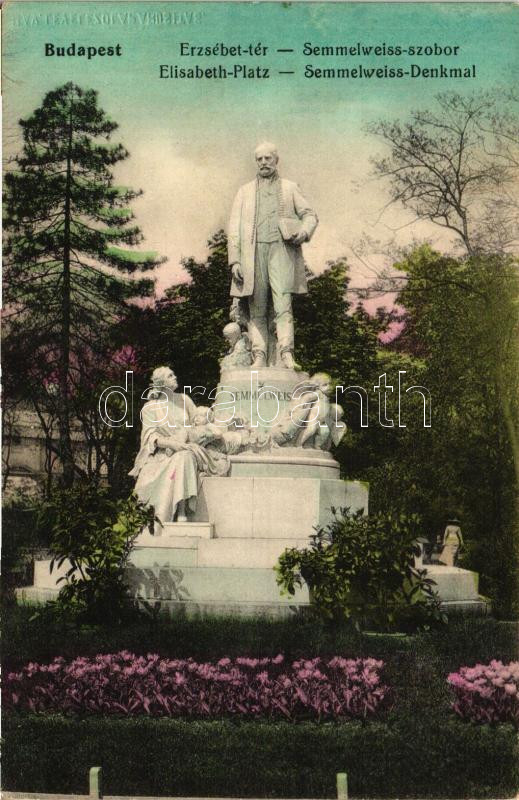 Budapest V. Erzsébet tér, Semmelweiss szobor https://www.darabanth.com/de/230-Fernauktion/230.0/Ansichtskarten/Ungarn~4/Budapest-V-Erzsebet-ter-Semmelweiss-szobor~II1036883