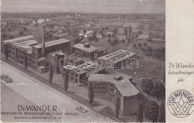Beschreibung: Budapest X. Dr. Wander Gyógyszer és tápszergyár Rt., reklám; Keresztúri út 30-38. (r)
