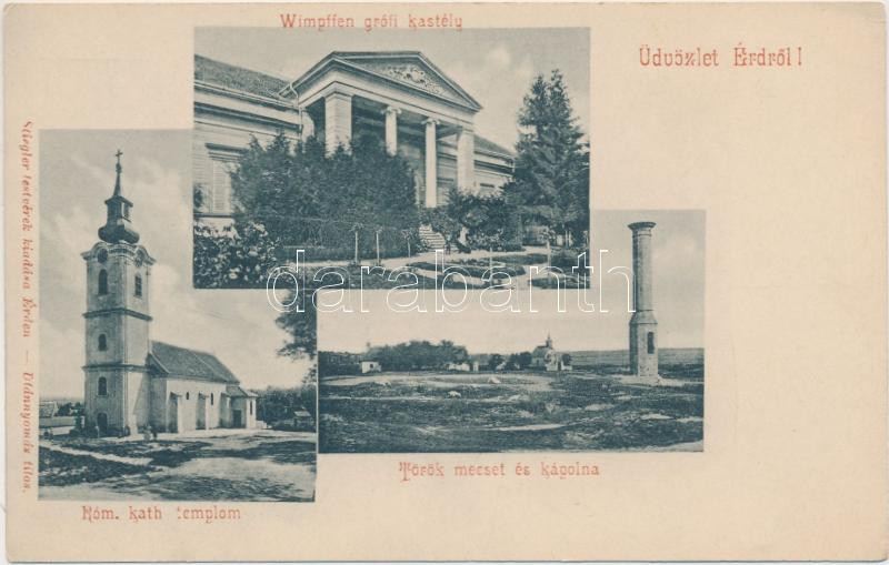Érd, Wimpffen gróf kastély, Római katolikus templom, Török mecset és k... https://www.darabanth.com/de/230-Fernauktion/230.0/Ansichtskarten/Ungarn~4/Erd-Wimpffen-grof-kastely-Romai-katolikus-templom-Torok-mecset-es-kapolna~II1030981