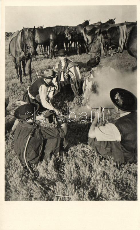Hortobágy, csikósok, folklór https://www.darabanth.com/de/230-Fernauktion/230.0/Ansichtskarten/Ungarn~4/Hortobagy-csikosok-folklor~II1030308