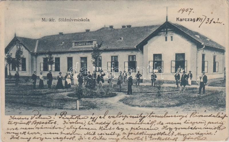 Karcag, Magyar királyi Földmíves iskola (EK) https://www.darabanth.com/de/230-Fernauktion/230.0/Ansichtskarten/Ungarn~4/Karcag-Magyar-kiralyi-Foldmives-iskola-EK~II1030049