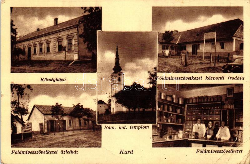 Kurd, Községháza, Földmívesszövetkezet és központi irodája és üzletház... https://www.darabanth.com/de/230-Fernauktion/230.0/Ansichtskarten/Ungarn~4/Kurd-Kozseghaza-Foldmivesszovetkezet-es-kozponti-irodaja-es-uzlethaza-belso-b~II1032245