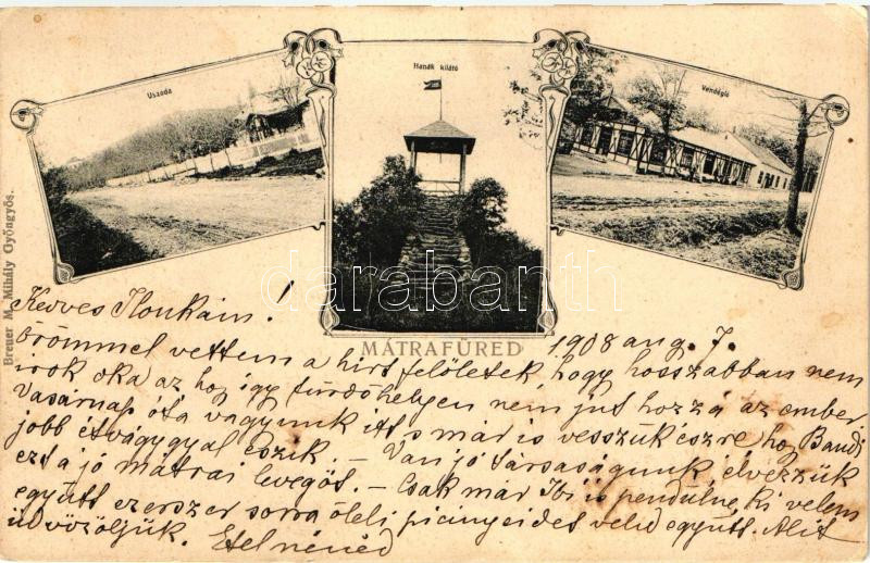 Mátrafüred, uszoda, vendéglő, Hanák kilátó, Art Nouveau (EK) https://www.darabanth.com/de/230-Fernauktion/230.0/Ansichtskarten/Ungarn~4/Matrafured-uszoda-vendeglo-Hanak-kilato-Art-Nouveau-EK~II1030960