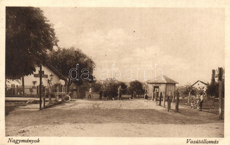 Nagymányok, vasútállomás, Cziráky Ferenc kiadása (ázott / wet damage) https://www.darabanth.com/de/230-Fernauktion/230.0/Ansichtskarten/Ungarn~4/Nagymanyok-vasutallomas-Cziraky-Ferenc-kiadasa-azott-wet-damage~II1012298
