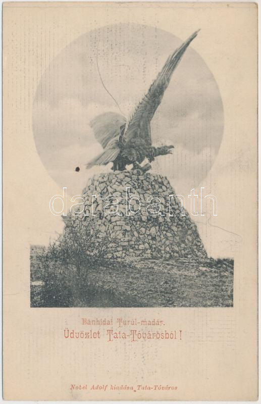 Tata-Tóváros, Bánhidai Turul madár, kiadja Nobel Adolf https://www.darabanth.com/de/230-Fernauktion/230.0/Ansichtskarten/Ungarn~4/Tata-Tovaros-Banhidai-Turul-madar-kiadja-Nobel-Adolf~II1030918