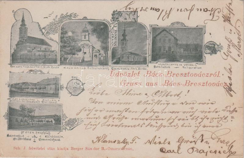 Bács-Bresztovác, Vasútállomás és vendéglő, Fő utca, paplak, Fő tér, nagyvendéglő, községháza / railway station, restaurant, main street and square, town hall, floral Art Nouveau (EK)