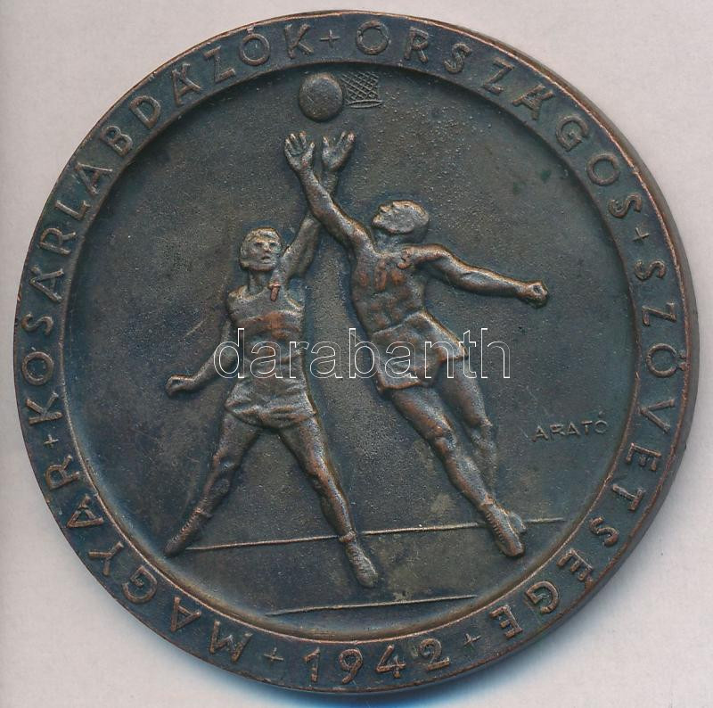 Arató Gyula (1889-1969) 1942. "Magyar Kosárlabdázók Országos Szövetsége" Br díjérem (50mm) T:2
