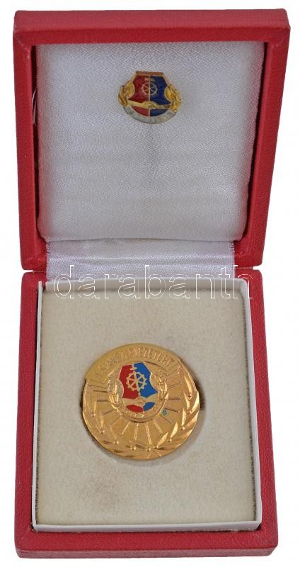 Beschreibung: DN "A Szakszervezetért 1877-1903" Vasas aranyozott, zománcozott jelvény, miniatűrrel tokban T:2,2-