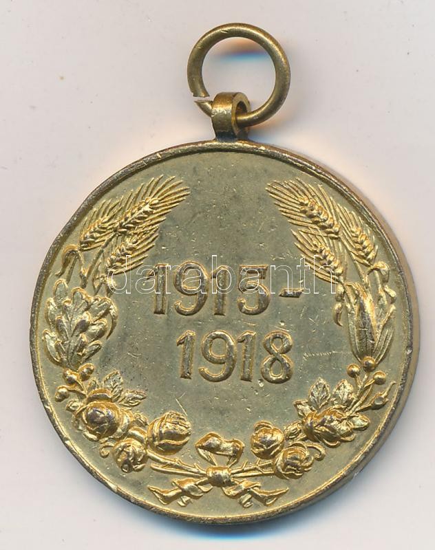 Bulgaria 1933. "Commemorative Medal for the War of 1915-1918" gilt metal decoration with ribbon C:XF