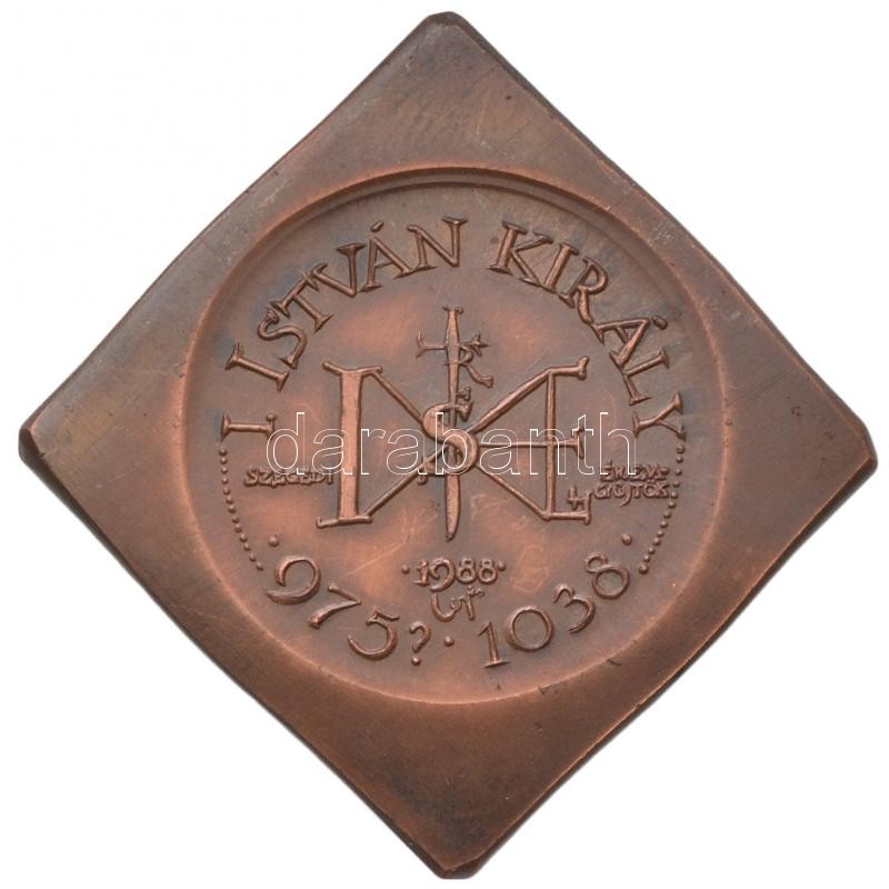 Lapis András (1942-) 1988. "I. István 975?-1038 - Szegedi Éremgyűjtők"... https://www.darabanth.com/de/230-Fernauktion/230.0/Numismatik/Ungarische-Edelmetall-Gedenkmunzen~400009/Lapis-Andras-1942-1988-I-Istvan-975-1038--Szegedi-Eremgyujtok-Br-csegely-emlekerem-~II1038147