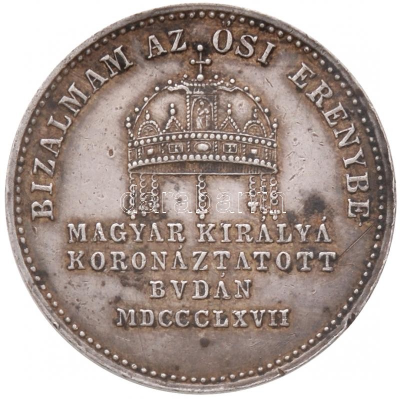 Osztrák-Magyar Monarchia / Bécs 1867A "Ferenc József koronázása Budán" Ag zseton. "I FERENCZ JÓSEF I K AVSZTRIAI CSÁSZÁR / BIZALMAM AZ ŐSI ERÉNYBEN - MAGYAR KIRÁLYÁ KORONÁZTATOTT BVDÁN MDCCCLXVII" (23.5mm/5.49g) T:2