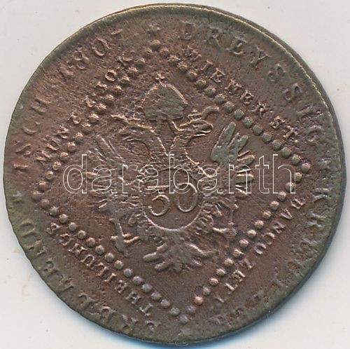 Beschreibung: 1807B 30kr Cu "I. Ferenc" T:3 ragasztásnyom